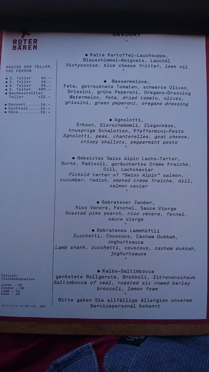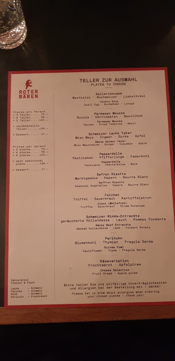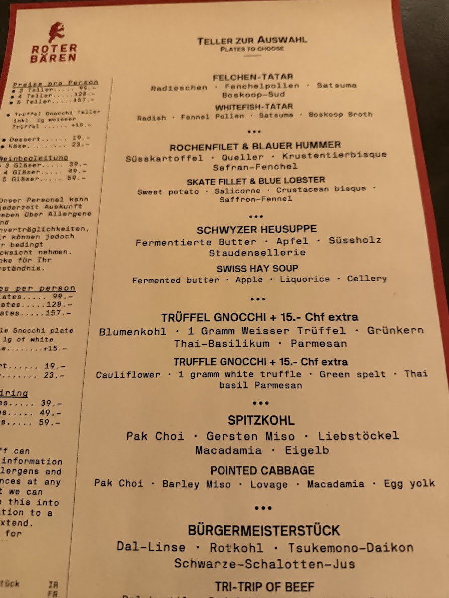 Each dish at Roter Bären reflects a blend of high-quality ingredients, expert preparation, and a passion for gourmet cuisine, making it a memorable dining experience in the heart of Basel.