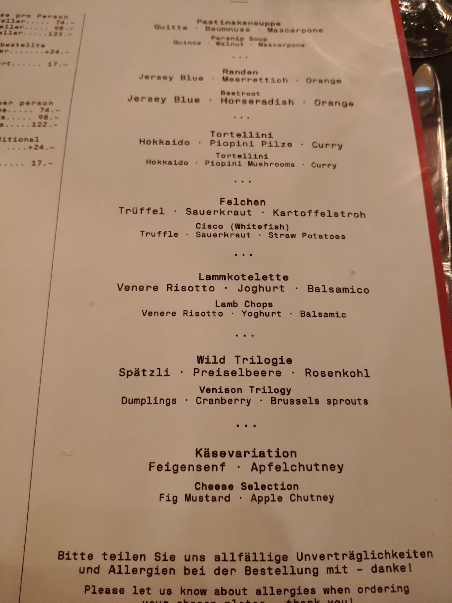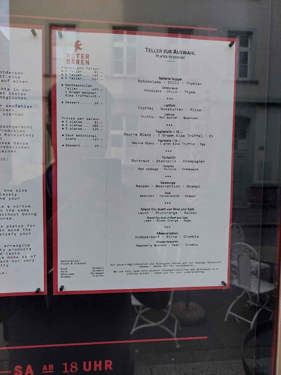 The menu at Roter Bären | Gourmet Restaurant & Bar in Basel offers a selection of exquisite dishes that showcase both traditional and contemporary culinary craftsmanship. One standout is the Chocolate, a dessert that promises a rich and indulgent end to any meal. For a more savory option, the Saltimbocca is a perfect choice, featuring delicate layers of veal wrapped with prosciutto, delivering an unforgettable combination of flavors. If you're seeking a lighter yet flavorful dish, the Beurre Blanc sauce, paired with fresh seafood or poultry, offers a silky and aromatic experience.